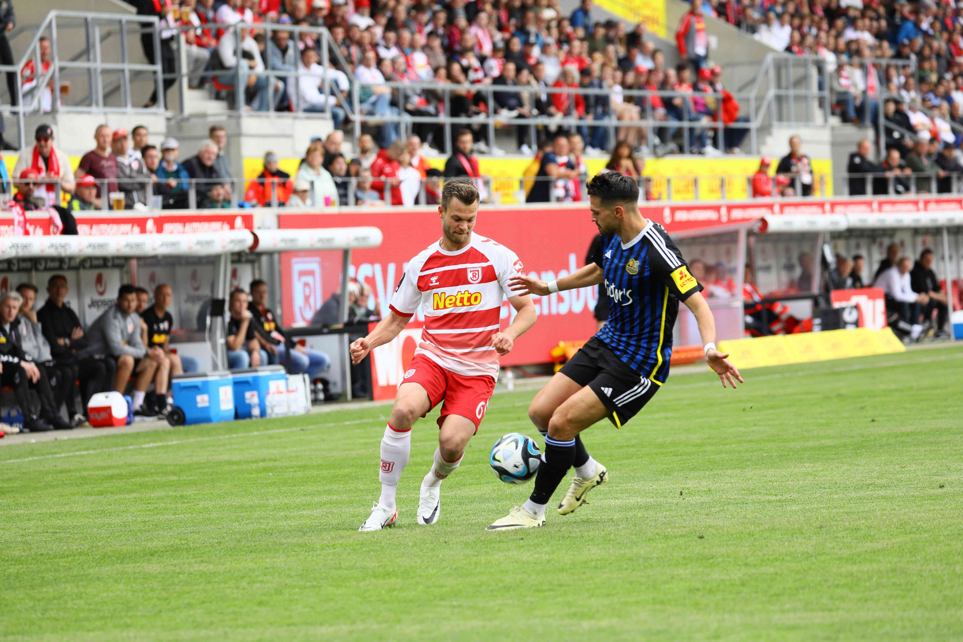Mit dem 1. FC Saarbrücken kommt der aktuelle Tabellenzweite ins Jahnstadion Regensburg. Offensiv können die Saarländer auf erfahrene und torgefährliche Spieler vertrauen: Florian Pick führt die Torjägerliste der 3. Liga mit 7 Toren an und auch Kai Brünker hat bereits fünf Treffer auf dem Konto. Der Saisonstart ist ganz nach dem Geschmack der Saarländer, die in den letzten drei Spielzeiten unter den Top Fünf gelandet sind. Im vergangenen Jahr scheiterte der 1. FCS nur knapp in der Aufstiegsrelegation. Dass der Verein auch dieses Jahr wieder oben mitmischt, schreibt Mittelfeldspieler Tim Civeja im Interview mit der Jahnzeit-Redaktion auch seinem Trainer Alois Schwarz zu: “Der Trainer hat sich uns angepasst, weil wir viele gute Spieler haben. Er geht auf unsere Stärken ein, setzt stärker auf Ballbesitz und darauf, dass wir konsequent auf Torabschlüsse spielen.”