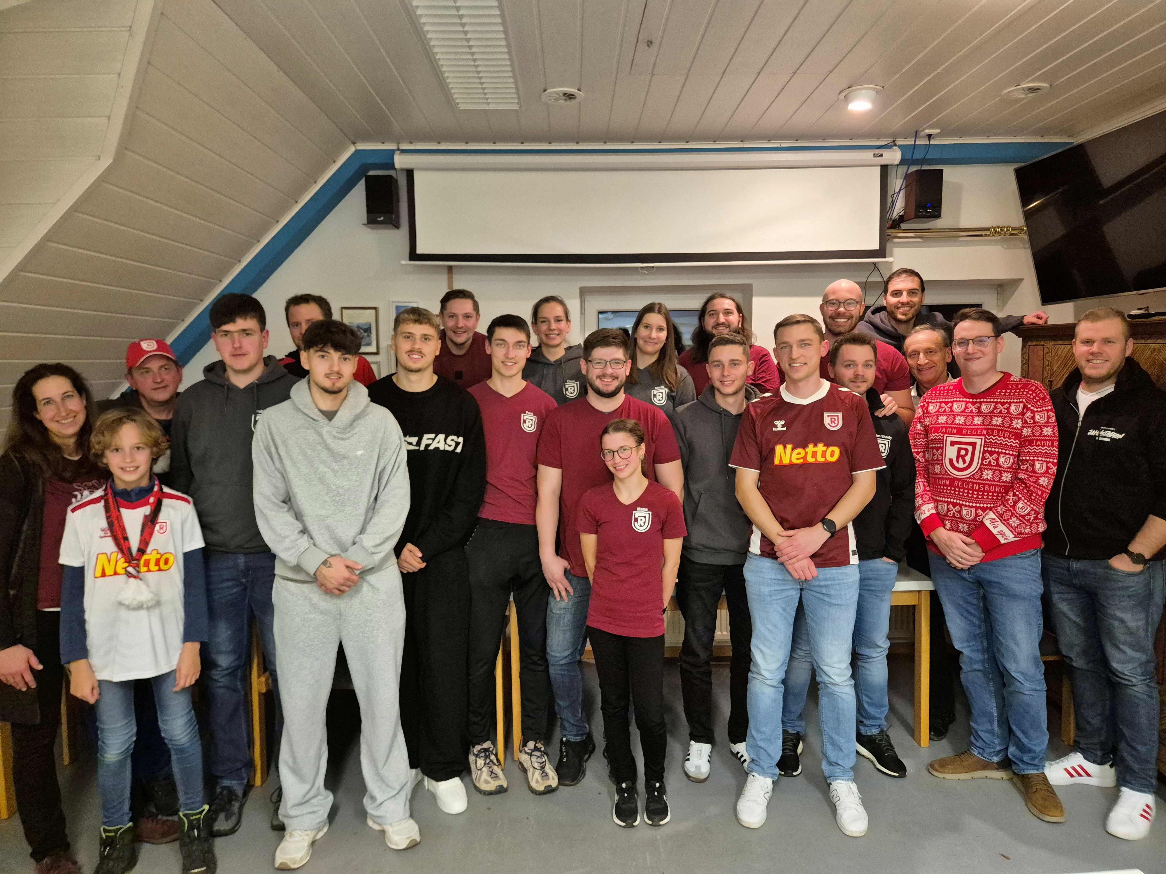 Auch Dustin Forkel und Nick Seidel nahmen sich Zeit und besuchten die Weihnachtsfeier des “Jahn Fanclub Maidastoi”. Bei entspannter und freudiger Atmosphäre nutzen die Mitglieder die Gelegenheit für einen Plausch mit den Profis. Neben den interessanten Gesprächen stand auch eine Diashow mit älteren Bildern des 2017 gegründeten Fanclubs auf der Tagesordnung. Zum Abschluss gaben Dustin und Nick noch fleißig Autogramme. Auch dieses Jahr können der Jahn und seine Fanclubs wieder auf stimmige Besuche zurückblicken.