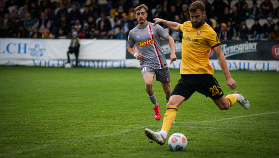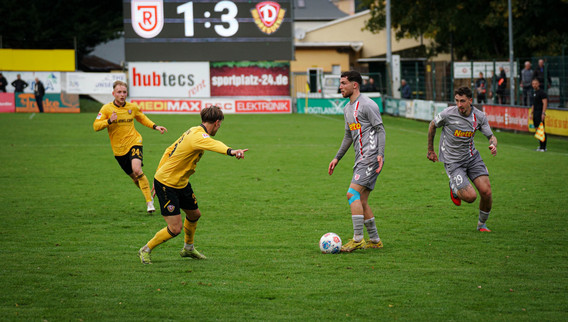 Die Jahnelf kam mit mehr Esprit aus der Pause: Hottmann flankte von rechts, Sebastian Stolze kam in der Mitte angerauscht - sein Schuss wurde im letzten Moment geblockt. Schiesdrichter Kluge ahndete den Klärungsversuch mit Handspiel im Strafraum und entschied auf Strafstoß: Bekchoff lief an, verwandelte und verkürzte auf 1:3 (47.). Der SSV stand nun besser in der Zweikämpfen, kassierte aber nach einer weiteren Unachtsamkeit den nächsten Gegentreffer: Erneut spielte Dresden einen Konter gegen eine aufgerückte Jahnelf schnell aus - am Ende einer Kombination blieb Kutschke vor Weidinger cool und schob den Ball zum 1:4 in die Maschen (54.). Mehrere Spielerwechsel unterbrachen nun ein wenig den Spielfluss. Für die Jahnelf ging es darum, das Spiel offener zu gestalten und mehr Torraukmaktionen zu kreieren. Dynamo zog sich etwas zurück und überließ dem SSV das Spielkommando. Eric Hottmann prüfte mit einem Schuss von der Stafraumkante Dynamos Torwart Grill, der den Ball zur Ecke lenkte (68.) - vorausgegangen war ein Ballgewinn nach einer Pressingaktion. Bene Bauer tauchte am langen Pfosten nach einem Schlag von Adrian Fein auf, seine Direktabnahme in den Fünfer konnte erneut Grill mit einer Hand entschärfen, sonst hätte Hottmann frei dahinter gelauert (69.). Die Tore machte jedoch Dresden: Nach einem Standard schraubte sich Lars Bünning am Höchsten und nickte zum 1:5 ein (71.) - ein weiterer Nackenschlag für den Jahn in dieser Phase. In der Schlussphase war der SSV um Absicherung in der Defensive bemüht, jedoch galt es dennoch in der Offensive noch für Akzente zu setzen. Bauer legte rüber auf den eingewechselten Dustin Forkel, doch der blieb mit seinem Schuss hängen (81.). Auf der Gegenseite bekam die Jahn Defensive noch einmal zwei Dresdner Ecken verteidigt. Der eingewechselte Schlemmer hatte noch einen weiteren Dresdner Treffer auf dem Fuß - doch er scheiterte mit seinem Versuch an Weidinger (88.). Anschließend ertönte der Schlusspfiff - teilweise war an diesem Nachmittag der Ligenunterschied durchaus zu erkennen. Der Jahn konnte sich nicht das erhoffte Selbstvertrauen vor den nächsten wichtigen Spielen in der 3. Liga holen, aber wird aus diesem Spiel sicher zumindest einige Erkenntnisse ziehen können. Weiter geht es für den SSV am nächsten Sonntag (19.10.) beim TSV Havelse.
