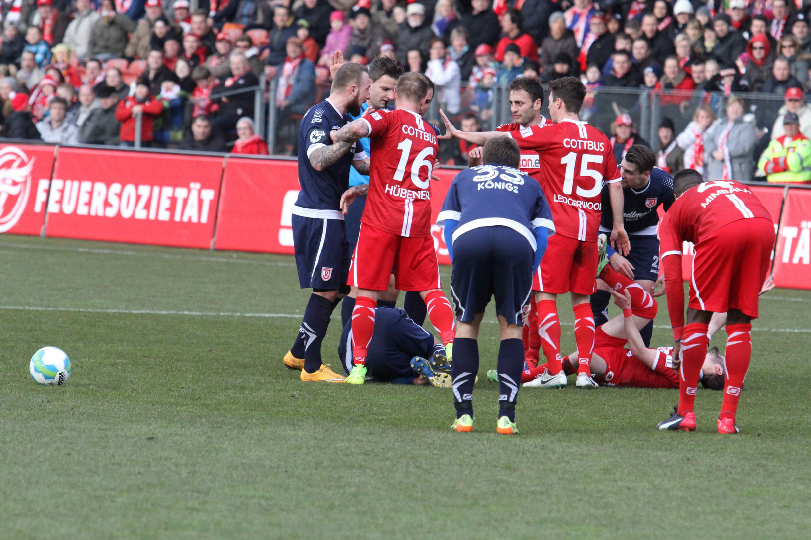 Der Tabellenprimus aus Cottbus musste am vergangenen Spieltag einen 1:3-Rückschlag in Wiesbaden hinnehmen. In einem hektischen Spiel geriet der FCE in Rückstand, zu allem Überfluss sah Mittelfeldakteur Dominik Pelivan noch vor der Halbzeit die gelb-rote Karte. Durch ein Aufbäumen nach dem Seitenwechsel glich die Elf von Claus-Dieter Wollitz in Person von Henry Rorig aus, doch es sollte nicht reichen. Wiesbaden ging acht Minuten später wieder in Front und machte in der Nachspielzeit den Deckel drauf. Somit gab es für die Lausitzer nach drei Siegen in Serie wieder eine Niederlage. Chef-Trainer Wollitz fand ungeachtet der erfolgreichen letzten Wochen deutliche Worte: “Trotz der Moral, die ich mir auch wünsche: Eine richtige Spitzenmannschaft sind wir noch nicht.” Dennoch hat die zweitbeste Offensive der 3. Liga (40 Treffer) immer noch zwei Punkte Vorsprung auf den Tabellenzweiten Duisburg. Vor heimischem Publikum ist Cottbus in der laufenden Saison besonders stark: Nur einmal ging der FCE im LEAG Energie Stadion als Verlierer vom Platz.