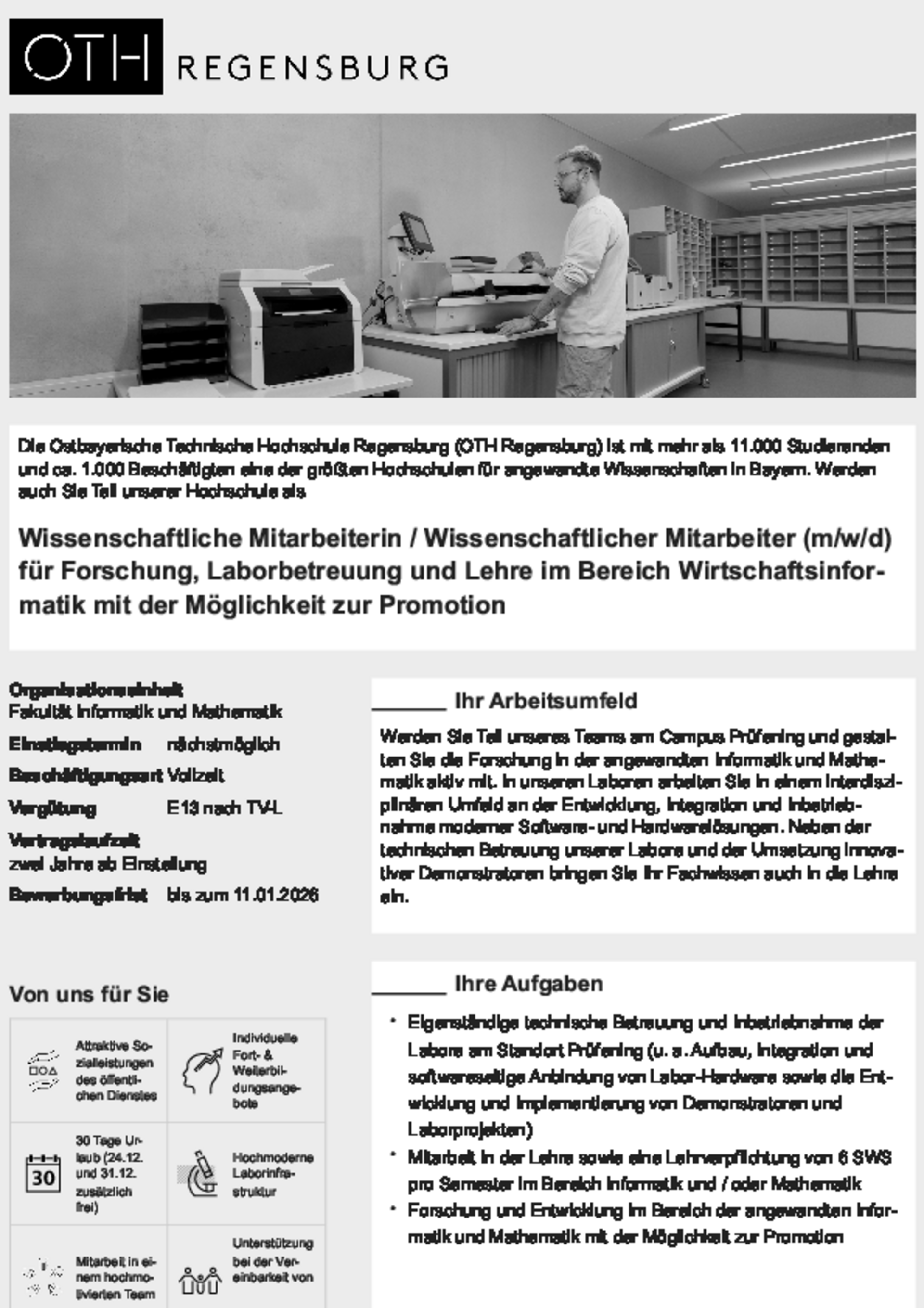 Personalabteilung: Frau Lisa-Marie Preuschl (lisamarie.preuschl@oth-regensburg.de; 0941/943-1011)