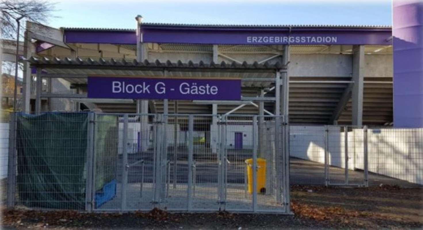 Das Tragen von Gästefankleidung in den Heimbereichen ist nicht erlaubt, gleiches gilt für das Mitführen von Fanutensilien. Der Zutritt zur Westtribüne (A/B & O/P) wird verwehrt. Die Stadionordnung des Erzgebirgsstadion.
